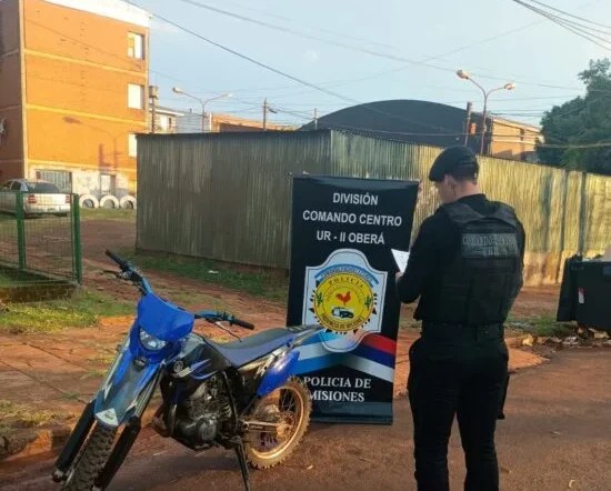Ante esa situación, solicitaron la presencia del personal de la División Seguridad Vial de Oberá, quienes labraron el Acta de Infracción y procedieron a la retención de la moto que fue puesta a disposición del Juez de Faltas local.