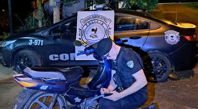 El procedimiento policial tuvo lugar ayer por la tarde en intersección de las calles Finlandia y Viena de Oberá, donde el Comando Sur detectó la grave situación y el motociclista huyó abandonando la moto, que fue retenida por la policía tras constatar varias irregularidades.