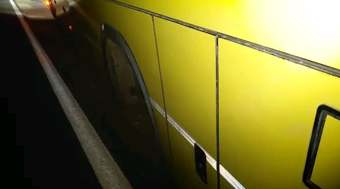 Según la información recabada en el lugar, la rueda salió despedida y terminó fuera de la calzada. El chofer logró detener el colectivo sobre la banquina, mientras personal presente trabajaba con linternas para localizar la rueda desprendida.
