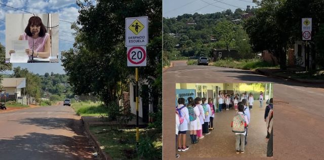 La municipalidad de Oberá colocó un cartel que reza escuela y máxima de 20 kilómetros por hora, pero esto no resolvió el problema, puesto que los conductores continúan circulando a alta velocidad frente a la institución educativa.