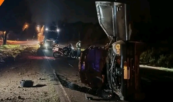Un despiste y vuelco se registró durante la madrugada de este sábado sobre la Ruta Nacional 12, a la altura del kilómetro 1434, Jardín América.