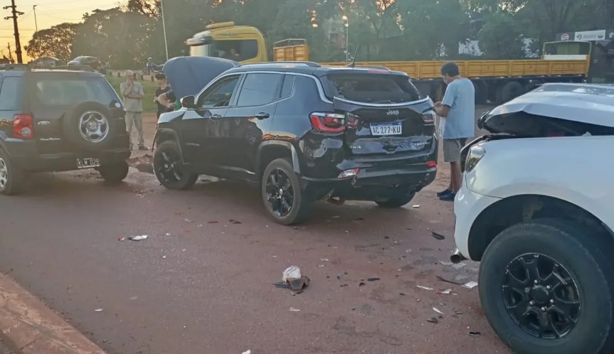 Tres vehículos se vieron implicados en un choque en cadena, aunque no hubo que lamentar heridos. El hecho se registró en la tarde del miércoles sobre ruta nacional 14, en la rotonda con la provincial 5, frente al Parque de las Naciones de Oberá.