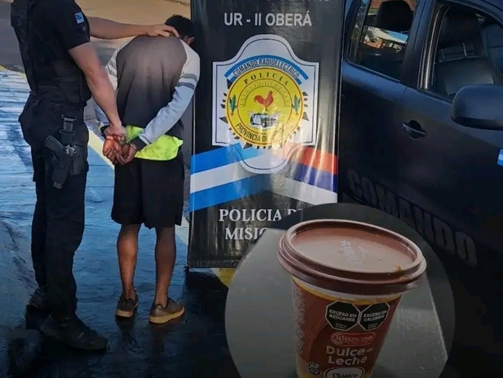Este mediodía, el ahora detenido se presentó en un comercio ubicado sobre la Avda. de Las Américas de nuestra ciudad y bajo la excusa de pedir agua robó un dulce de leche, lo que fue denunciado por la empleada del lugar tras revisar las cámaras de seguridad.