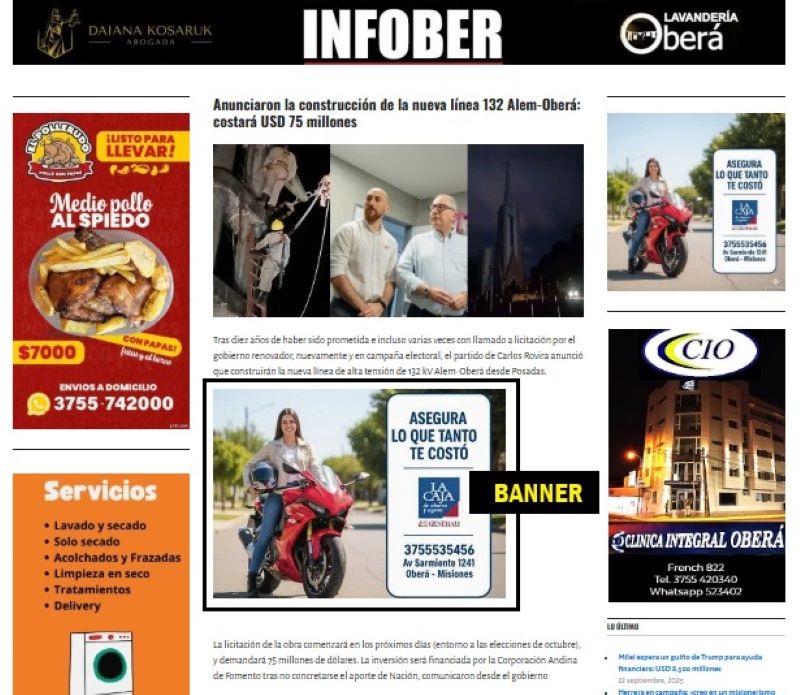 Infober Digital pone a disposición de su empresa espacios publicitarios en nuestro portal de noticias y redes sociales.